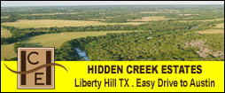 Experience incredible views, gorgeous riverfront and creek frontages, beautiful live oak trees and modern conveniences in our upscale, country community. Hidden Creek Estates will provide you with the perfect blend of country living and close proximity to your job in the city of Austin, so you can live in the country but still work in the city!