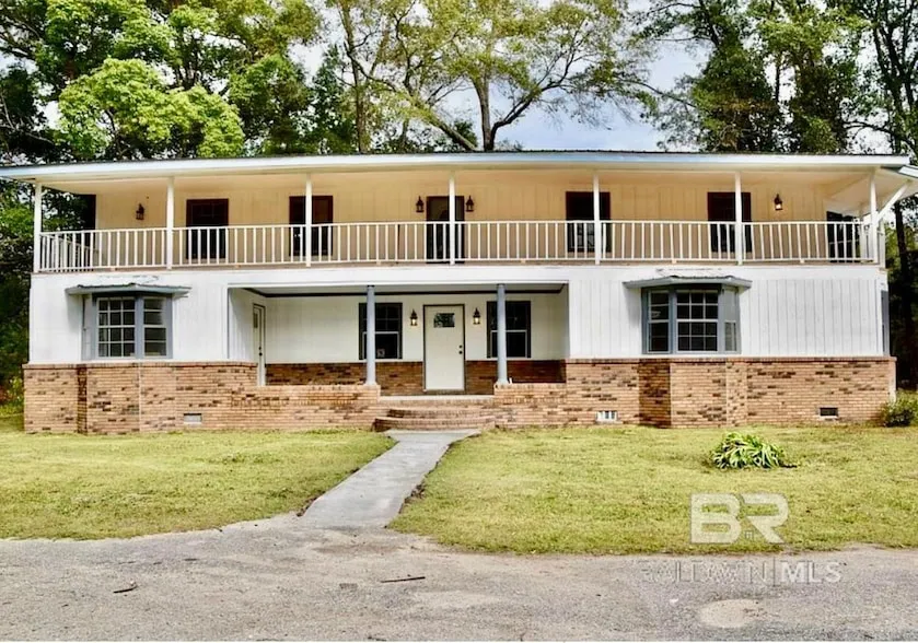 This beautiful sprawling 5-bedroom, 2 1/2-bath home sits on a generous 2.2 acre lot, offering both space and tranquility. This property sits at the end of the road, with wooded areas on the back and east sides it is sure to stay a private oasis. The main floor beautiful master bedroom has an en-suite bathroom and two large bay windows bringing in natural light. The kitchen boasts elegant granite countertops, luxurious tile floors, and sparkling new appliances. The kitchen opens to a nice eating area followed by a bonus room that could be anything you can imagine, office, kid's playroom, extra tv room. Upstairs, you'll find 4 nicely sized bedrooms and a guest bathroom with shower/tub combo. There is an expansive second-floor balcony, stretching the entire length of the house. Picture yourself enjoying your morning coffee or evening sunsets observing nature from your perch up above. A versatile outbuilding is located next to the house. Located in the charming Flomaton area, this property offers a peaceful lifestyle with the convenience of being within a reasonable drive to Atmore and other local amenities. Don't miss this opportunity to own your slice of Alabama paradise! Brand new metal roof for years of worry-free living. Inside, each level has its own heat pump to ensure year-round comfort. Home is being sold AS IS! Seller will furnish a 1 year home warranty & Title is clear & New survey will be available. Buyer to verify all information during due diligence.