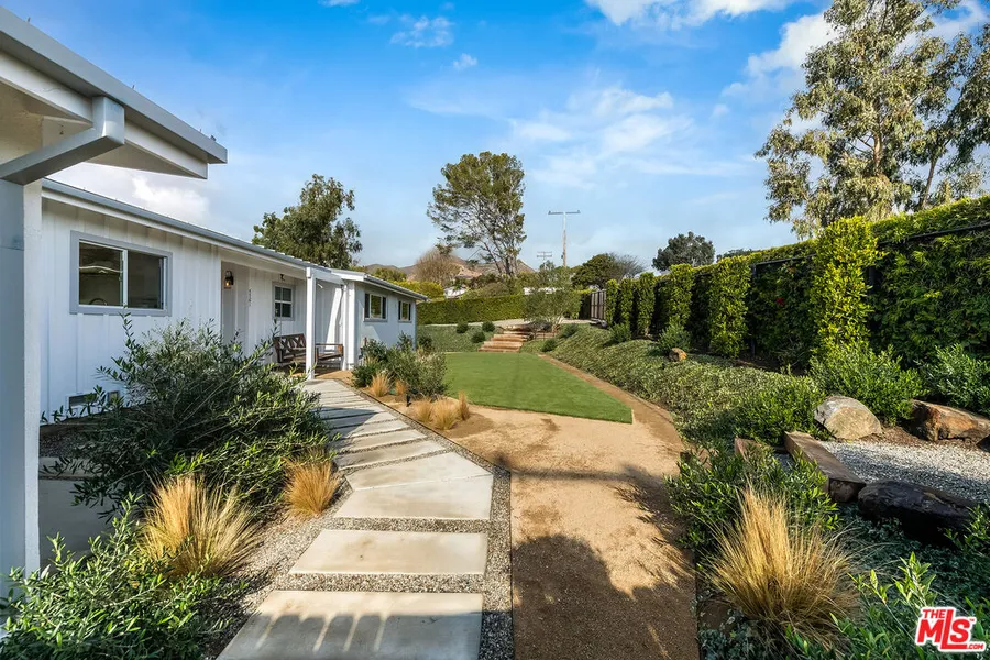 This beautifully redone one-story Contemporary Ranch home is located on one of the most quiet & tranquil cul-de-sacs in Malibu Park offering stunning ocean views and is set on over one acre of mostly usable land providing ample space for horses, a barn, a pool or plenty of space to build an ADU. The home features three bedrooms, including a spacious primary suite with ocean views and a large walk-in closet, two bathrooms, and a gym or home office. The open floor plan includes gorgeous hardwood floors throughout, a two sided fireplace that you can enjoy from both the living and dining rooms & fully approved plans and permits for a brand new deck off the backside of the house which allows apx. 1,100 sq ft of outdoor space perfect for enjoying the surrounding nature with views of Point Dume and Zuma Beach. The fully gated front yard boasts a lush lawn with beautiful landscaping, a big flat pad that sits just above the main house with views perfect for an Air Stream trailer offering a peaceful and private serene space great for a guest or older child to reside. The fabulous gourmet kitchen is expansive and equipped with professional appliances perfect for cooking & entertaining. The laundry room includes a sink and an abundance of cabinetry for linens and storage. Additional features include a brand new metal roof, a Generac back-up generator and convenient proximity to mountain bike, horse and hiking trails as well as Zuma Beach and Malibu High School. This property offers the ideal blend of privacy and comfort. Available fully furnished. Property is completely fenced both front and back to keep your animals safe, 2 car garage with a great size driveway which provides ample parking.