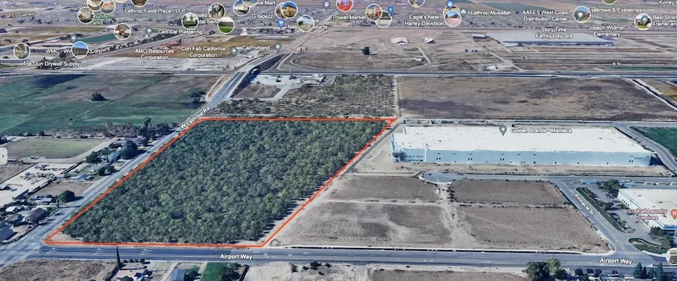 Busy Corner of Airport and Louise! Est 21 acre corner lot ready to develop. Currently used at an Almond Orchard. Zoned AG-40. Master Plan Zoned w underlying General Commercial Land Use designation. Rendering of potential map available. May split Commercial and Industrial Use. Drawings for streets and run off. Call for extra information for future use.