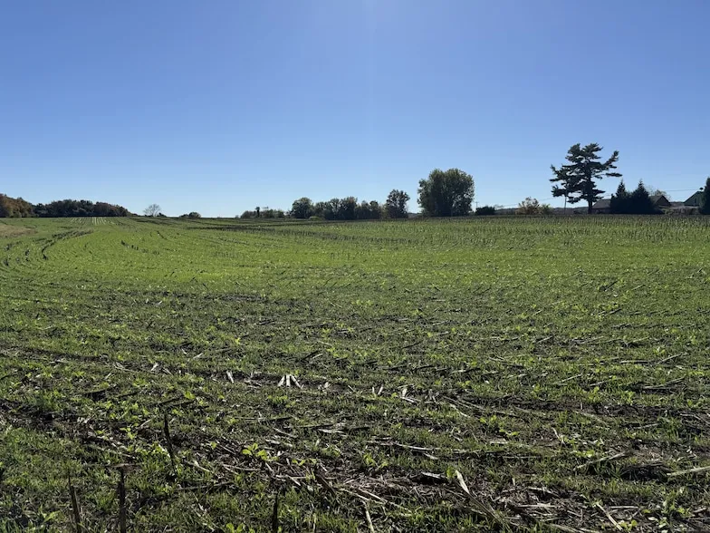 52 ACRES of prime, hilltop, residential/agricultural land with .6 Mile road frontage. 36 acres cornfield farmland, balance is lighted wooded. RR80 Zoning. Mostly dry and level with hilltop vistas. Potential for 15 road frontage building lots. A special piece of property.