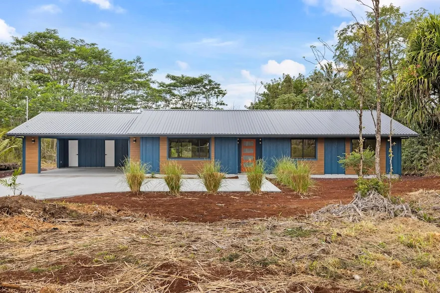 This architect-designed 3-bedroom, 3-bath home by Paradise Homes Hawaii blends premium quality with thoughtful design and attention to detail. Built with engineered 20" concrete footings and designed for maximum climate resilience, the home pairs sleek, contemporary finishes with lasting functionality. The great room is made to impress, featuring vaulted ceilings, recessed lighting, an 8 ceiling fan, and seamless indoor-outdoor living, perfect for the island climate. The primary suite offers a walk-in closet and elegant en suite with a double-sink floating vanity and hand-milled hardwood counters. Two spacious guest bedrooms share a full bath with tub and tile surround. From the dining area, sliding doors lead to a covered lanai with tongue-and-groove ceiling and exterior lighting, creating a seamless transition for outdoor entertaining. The covered carport includes an exterior laundry room and third full bath with custom tile shower. The lot has been selectively cleared to preserve native trees and create a natural privacy buffer. Landscaping includes a Malay dwarf bamboo hedge along the front 4' chain link fence, enhancing the home s peaceful setting. Entry to the property is gated. Additional Highlights:LP Smart Panel & New Tech siding for durability and low maintenanceWhirlpool appliances & quartz countertops in the kitchenGE Washer & Dryer (gas)Rinnai on-demand hot water systemFully insulated walls and ceilings for comfortSmooth drywall with premium Scuff Tuff paintCustom window coveringsSingle level with 36" doors & 42" hallways for accessibilityVaulted ceilings, recessed lighting & black-finish windowsOversized Echolux LVP flooring75" wall-mounted flat-screen TVConveyed with a 1-year contractor warranty, this home is the ideal choice for the discerning buyer who appreciates superior craftsmanship and uncompromising quality.