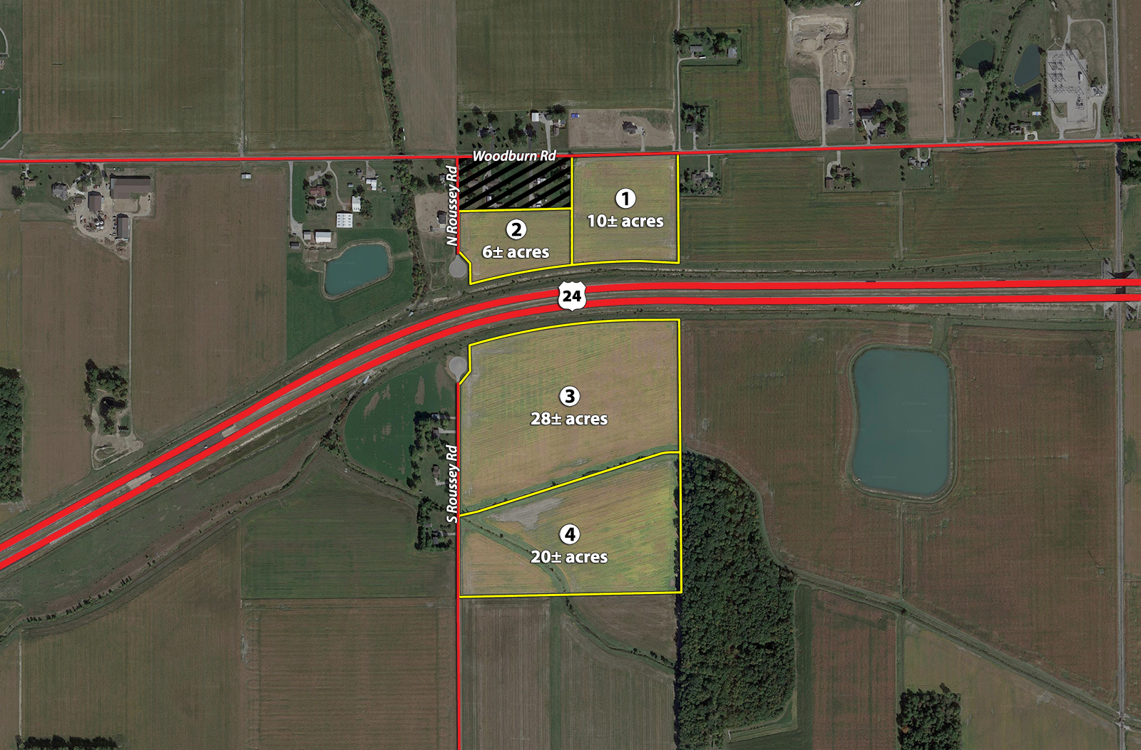 16+/- Acres Located Along Woodburn Rd, & Adjacent to N Roussey Rd Cul De Sac (North of US 24). 48+/- Acres Located Off of S Roussey Rd (South of US 24, Access This Parcel Via Slusher Rd to Roussey Rd).