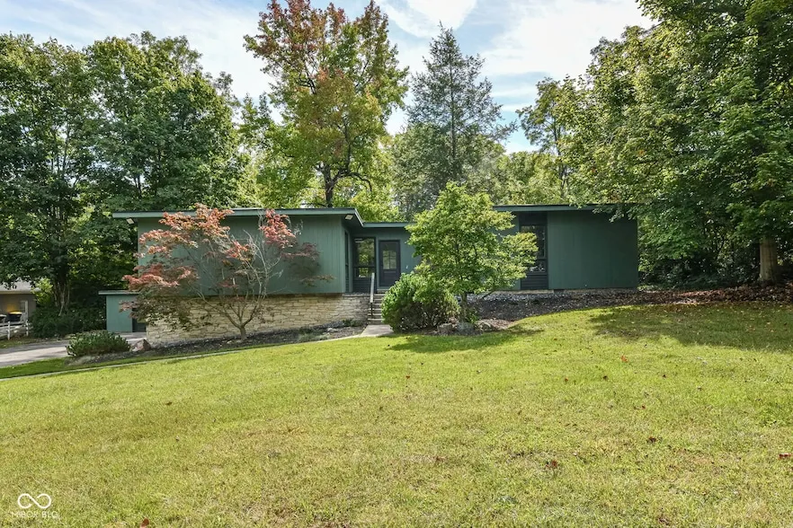 Experience the perfect balance of style, comfort, and privacy in this fully renovated 3 bedroom, 2.5 bath Mid-Century Modern home on over an acre in Washington Township. Completely remodeled in 2025, every detail was thoughtfully chosen to blend timeless architecture with modern luxury. Expansive windows and skylights flood the home with natural light, highlighting an open floor plan anchored by a striking stone fireplace and connecting seamlessly to the dining area and gourmet kitchen. Designed for both everyday living and entertaining, the kitchen is a chef's dream with quartz countertops, custom cabinetry, Cafe dishwasher and microwave, Mercury refrigerator, and a commercial-grade Hestan gas range with dual ovens, griddle, and pot filler. Gather with friends around the oversized island, enjoy morning coffee in the screened-in porch, or host summer evenings on the spacious deck surrounded by mature trees. Indulge in the private cedar sauna for the ultimate in relaxation. The dedicated home office offers a quiet space for productivity. The walk-out lower-level expands your living space with a rec room and mudroom/laundry, and access to the backyard. Recent updates include a new roof, HVAC system, skylights, flooring, light fixtures to name just a few, giving you peace of mind and a true move-in ready lifestyle. The detached garage offers storage and the potential to finish a second level for in-law quarters or a studio, making this property as flexible as it is beautiful. With high-end finishes throughout and over an acre of wooded serenity, this rare offering is more than a home, it's a lifestyle. Imagine mornings filled with natural light, evenings by the fire, and weekends entertaining in a space that reflects both sophistication and warmth. Located just minutes away from shopping and dining it is in an ideal location. Don't miss your chance to own this exceptional property.
