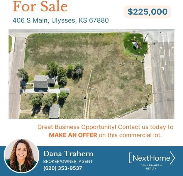 Prime Corner Location with Endless Potential!Location is everythingand this 1.2 acre corner lot at Oklahoma and Main Street in Ulysses offers unbeatable visibility and opportunity. The property includes a 3-bedroom, 2-bath home with a partial basement, making it perfect for use as a residence, office, or an investment property while you plan your future build or business venture. With its high-traffic corner and generous lot size, this property is ideal for starting, relocating, or expanding your business in a thriving area of town.?? For more information or to schedule a showing, contact Dana Trahern at NextHome Dana Trahern Realty 620.353.9537