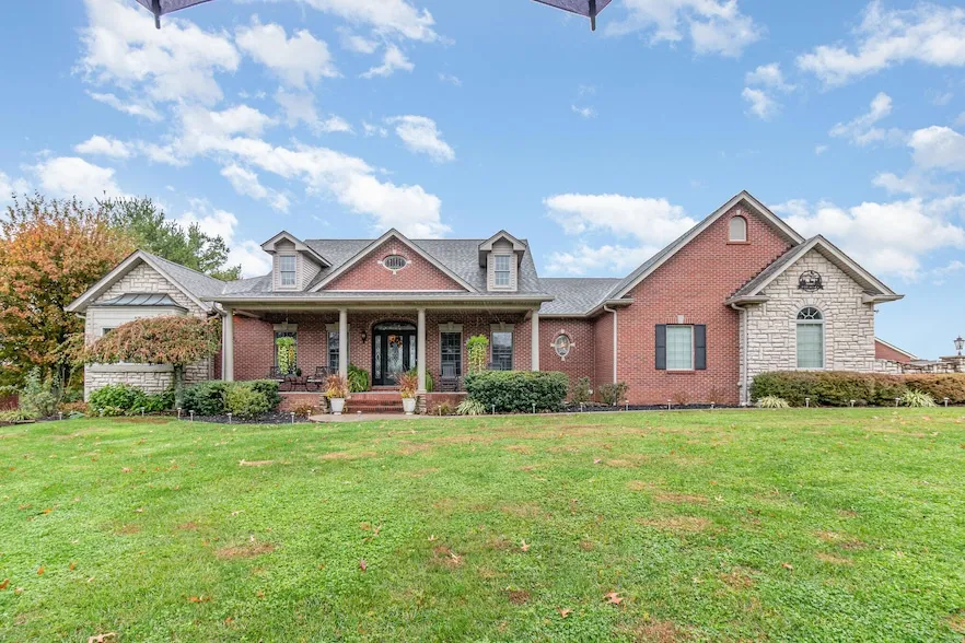 Beautiful brick-and-stone ranch just 1 mile from I-75 an ideal location: 25 minutes to Florence, 45 to Georgetown, and 1 hour to Lexington. This well-maintained Dry Ridge gem blends elegant finishes with comfortable, functional living. Home is a 4 bedroom / 4 full bath and 2 1/2 bath home. This home has an inviting front porch which leads into a bright, open floor plan with hardwood floors throughout the main living areas. Formal dining room off the foyer which leads to an open-concept living room with built-ins and a marble-accented gas fireplace. Chef-ready kitchen with durable solid-surface counters, stainless appliances including an induction range, pantry, custom cabinetry, and a planning desk. To the side of the kitchen there is a casual dining area which opens to a patio and private in-ground pool. The backyard is chain-link fenced with double gates and additional privacy fencin...