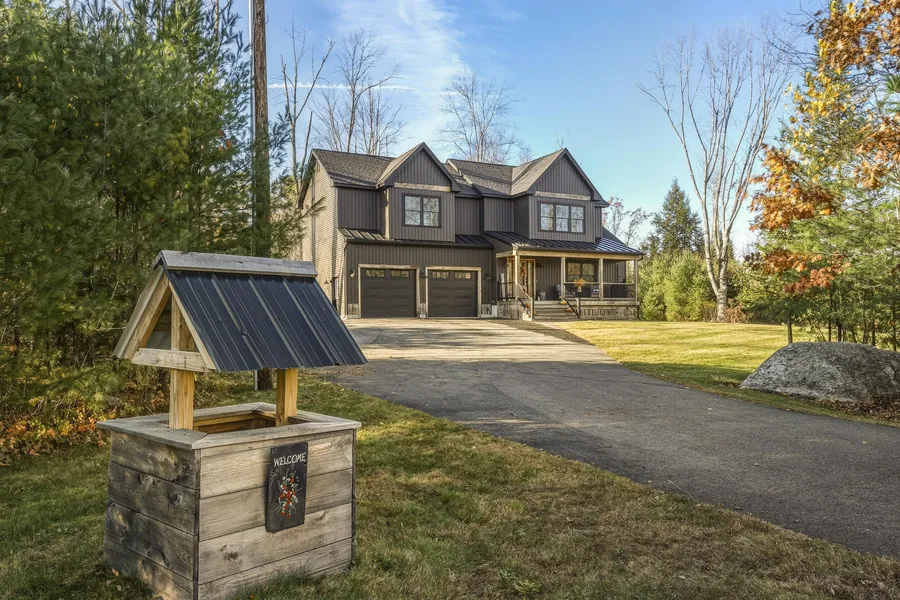 You'll love this fabulous contemporary colonial that blends clean design with warm rustic farmhouse touches. Sunlight pours through expansive windows, creating a bright and welcoming atmosphere perfect for today's lifestyle. Step inside to an open and airy first floor designed for effortless entertaining. The spacious living room centers around a cozy electric fireplace, ideal for relaxing evenings. The dining area flows seamlessly into a beautifully appointed kitchen featuring premium finishes, generous counter space, top-tier appliances, and a large walk-in pantry. A convenient mudroom and half bath offer everyday practicality. Upstairs, the generous primary suite provides a true private retreat, complete with a comfortable sitting area, a luxurious en-suite bathroom with a custom tiled walk-in shower and double vanity, and an oversized walk-in closet. Two additional bedrooms are thoughtfully designed; one includes a private office nook perfect for remote work or study. They share a full bath, and the dedicated laundry room adds ease to daily living. Outside, the charm continues with a large front porch accented by natural hemlock trim—an inviting spot to enjoy morning coffee or admire Maine's changing seasons. The expansive 3-acre setting enhances the outdoor experience, featuring a spacious deck, patio, and dedicated fire pit area. Outdoor enthusiasts will appreciate direct access to neighborhood walking trails, perfect for peaceful strolls, dog walks, or connecting to snowmobile trails that lead through Windham and beyond. Conveniently located just minutes from shopping, dining, Sebago Lake recreation, and commuter routes to Portland, this home offers the perfect balance of serene suburban living and easy access to everything Maine has to offer. Don't miss your chance to own this exceptional property — schedule your showing today!
