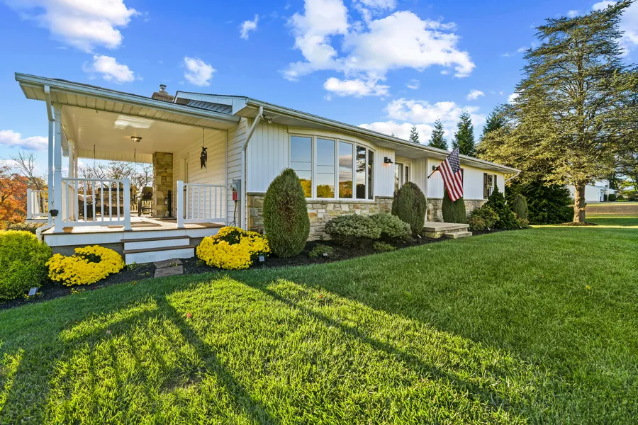 Featuring a sunroom wrapped in windows, offering panoramic views of the gently rolling, park-like setting — perfect for morning coffee, evening sunsets or a great work out! Step inside to find a beautifully remodeled kitchen with granite counters, stainless Electrolux appliances, soft-close cabinetry, and a large breakfast bar. plus roomy dinng area adjacent. Hardwood floors, new lighting, and neutral paint throughout create a warm, modern feel. The living room features a bay window, new front door and custom full-wall fireplace for cozy gatherings. Primary bedroom with private bath and two additional generuously size bedrooms with lots of natural lighting. Lower level offers additional living area with gas stove, ramily room and entry to outside patio with hot tub. More great ameneities to this property; two-car integral garage plus detached two-car garage with office /studio/game room space above, beautifully paved drive with lots of parking, utility room with extra storage, washer, dryer, laundry sink. Solar panels(paid in full) on garage for super efficient property, large parking space for your RV/boat and invisible dog fence all around the house. Just three miles north of Fifth District Elementary School in the "HEREFORD ZONE". and just 10/15 minutes to I-83 or 795!