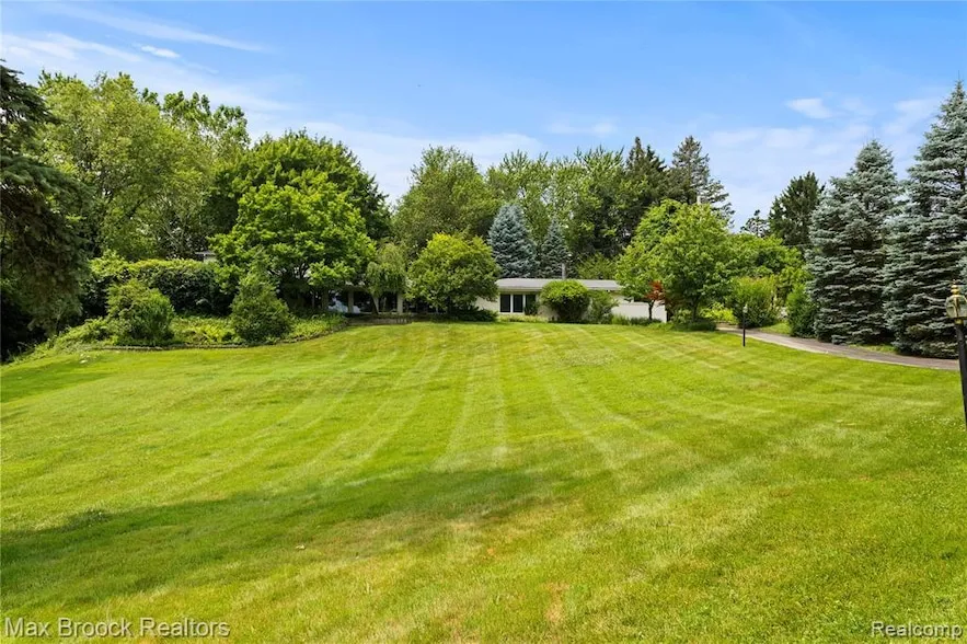 Price reduction, one of the most premium lots in all of Bloomfiled! Call Chris. Experience the luxury of refined and tranquil living with this magnificent custom built contemporary ranch on over 1.3 acres in the heart of Bloomfield Hills. Perfectly nestled high up near one of the most sought after subdivisions in Bloomfield Hills, this truly one of a kind residence boasts an unparalleled 4500 sprawling square feet over one level. The moment you walk through the front door you'll be mesmerized by the impeccable detail put into this home that features striking hardwood flooring in a space filled with light. Strolling through the immense great room, grand bay windows surround you at every turn. Throughout the home, an open layout allows for seamless transitions from room to room, it's an entertainers dream. The primary suite is something to behold. Boasting over 20 ft ceilings, grand firep...