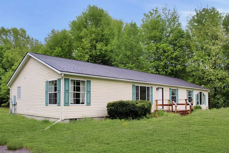 4 bed 2 bath manufactured home. This home sits on 18+ mostly wooded acres in Birch Run School district. Home features large primary bedroom with attached private full bath, 2 separate living spaces, laundry room, and office.
