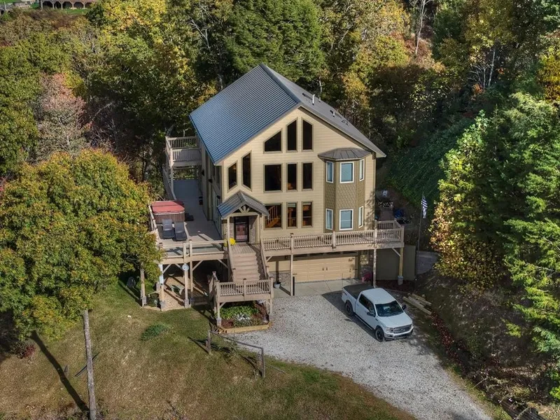 Welcome to Grand View Falls, where this custom-built residence captures breathtaking, long-range views stretching from the Snowbird Mountains into Tennessee. The two-story main living room sets the tone with soaring ceilings, a dramatic wall of windows, and an elegant fireplace that anchors the space with warmth and grandeur. The open, vaulted layout flows throughout the home, complemented by abundant storage and an executive master suite designed for comfort and space. On the lower level, an expansive additional great room with a stone fireplace offers an inviting setting for entertaining or relaxed evenings. A spacious two-car garage or workshop provides ample room for projects and gear. Recent upgrades—including a new roof and new kitchen appliances—bring peace of mind, while the hot tub, grill, and sauna add a touch of resort-style living. Outdoor living shines here as well, with generous deck and patio spaces that make the most of the warm season. The community offers trails, common areas, and pickleball courts, and the surrounding region is rich with opportunities for whitewater, hiking, fishing, and cycling.