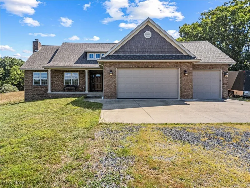 Built by IVAN YODER BUILDERS in 2014, this custom built all brick ranch has 3 bedroom, 3 car garage , 2.5 baths, and sits on 10.1 acres over looking the valley. The home is well maintained. Floor plan is an open design . The kitchen is by Cabinate Specialities with a 2 seat peninsula and all stainless appliances. The first floor laundry has extra cabinet storage and a built in laundry table. There are French doors leading out to a patio over looking the private back yard. There is plenty of storage with 2 Double closets in the hall, one used as a panty. Master bedroom has private bath with walk in closet. The house has all oak trim and all doors are solid wood 6 panel doors. The lower level has a wood burning fireplace, potential for more living space if buyer chooses, and has a walk up access to the 3 car garage. All mineral rights owned by seller will transfer to the buyer. There is a 32x64 pole building, with electric. Seller is receiving a homestead tax credit of $399. Sellers are offering a 1 yr home warranty thru Choice Home Warranty Company. The view on this property is beautiful and has a private setting. Carrol Co-Op is the electric . Wi-Fi through Frontier.