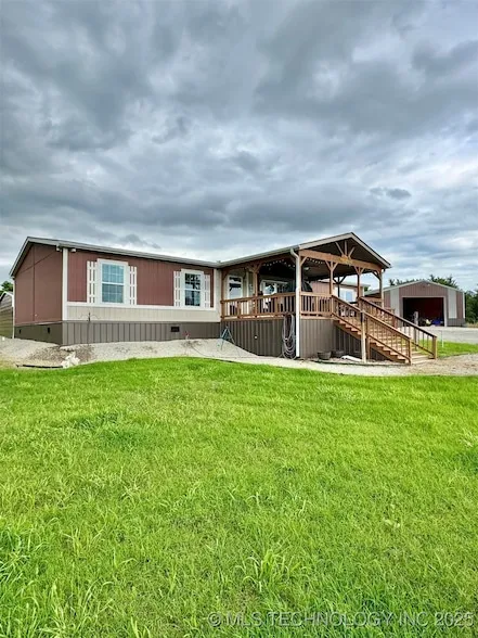 Lake Life Dreaming? Welcome to Duchess Creek Acres! This 4 bed, 2 bath gem sits on a full acre of fenced-in fun plenty of room for the kids, pups, or a spontaneous cornhole tournament. You ll love kicking back on the huge covered deck, perfect for entertaining, watching the big game, or soaking in those golden Oklahoma sunsets. Inside, it s open-concept living at its finest with a massive island where everyone always ends up hanging out. The primary suite is a total treat with not one, not two, but THREE closets (because lake life still needs storage!). Unwind in the soaking tub or rinse off sandy kiddos in the oversized shower after a day on the water. Located in a golf-cart friendly neighborhood in the heart of Porum Landing, you re minutes from the marina, tasty local eats, and a boat ramp less than a mile away. Got lake toys? Store em all in the 30x40 shop no more playing Tetris with your stuff. And if you re dreaming even bigger, there s a half-acre lot right behind it for sale too! Build a guest cabin, place another manufactured home, or just keep it all to yourself. (MLS #2523114) This one checks all the boxes for lake living with a laid-back vibe. Come see it before it s gone!