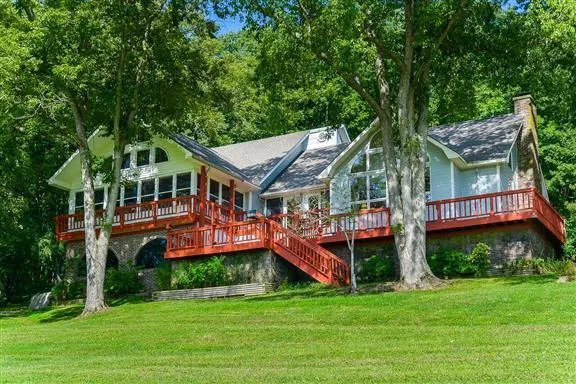 Gorgeous views from this unique home w/open living area, vaulted ceilings & wood burning FP on apprx 41 acres. 2 bedrms & 2 full baths down- MASTER opens to covered screen porch. 2nd level has 1 bedrm, bath, kitchen, & living area w/separate entrance! Exercise room in lower level. Black Walnut & Pecan grove borders gorgeous creek w/ private bridge! Gorgeous hardwood floors! Enclosed breezeway/indoor patio! 50 X 15 Work Shop. PRICED BELOW 2018 APPRAISAL!