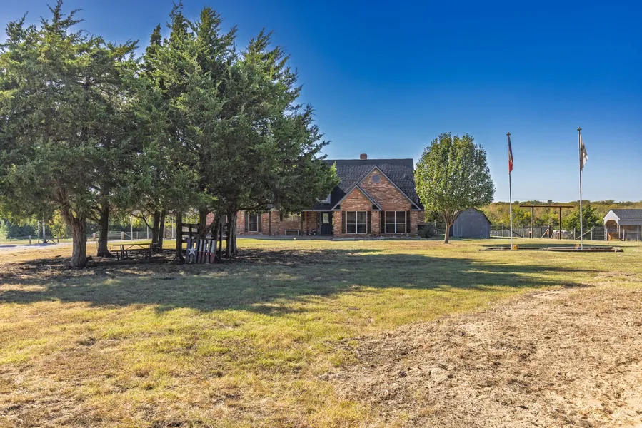 Step outside and take in the land—rolling pasture, a peaceful pond, mature pecan trees, and other hardwoods create a serene, park-like setting. The property is fully fenced and ready for horses or cattle, with a barn and stable already in place. A wet weather creek borders the back of the acreage, adding natural charm and privacy. Out back, an inviting saltwater pool overlooks the western pasture, the perfect place to relax and take in the sunset.