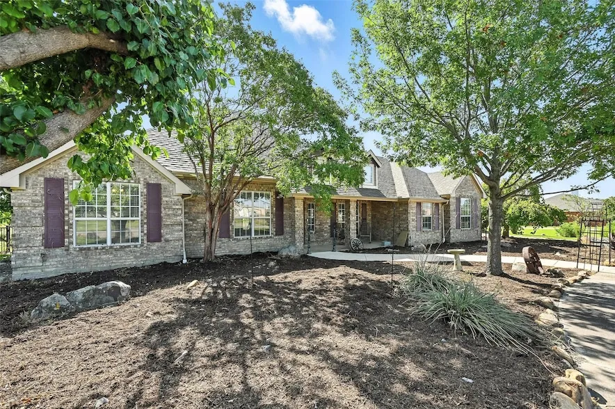 Tucked away on over an acre of peaceful country charm in Lavon, this 4-bedroom, 2-bath home is the perfect place to kick back, relax, and enjoy lakeside living! Step inside to find stunning REAL hand-scraped hardwood floors that flow throughout the open, airy layout. The tall ceilings and cozy fireplace create a welcoming atmosphere, perfect for family gatherings or quiet nights at home. The spacious primary suite is a true retreat! There's plenty of room for a sitting area, and you can open the windows on cool nights to hear the pool's waterfall lull you to sleep just a few feet away. There's a large ensuite bath with soaking tub and separate shower and an impressive L-shaped walk-in closet with enough room to hold all your shoes! But the real fun happens outside: a covered outdoor living area with a stone fireplace and big screen TV, a bar in the making waiting for your grill, a dipping pool with a custom waterfall that doubles as a heated spa, and a shaded pergola for those warm Texas evenings. For those who need space for hobbies or storage, the enormous workshop with another large covered patio area is ready for lifts, tools, and toys, plus an additional shed with attic storage for all your extras. This amazing property is located on a wide, quiet street with no HOA, and just down the road from Lake Lavon and its boat ramp, offering the best of country living with easy access to lakeside fun. If you're looking for a place where comfort meets country living and outdoor adventure, this is it! We love our Veterans! Let's Get You Home!