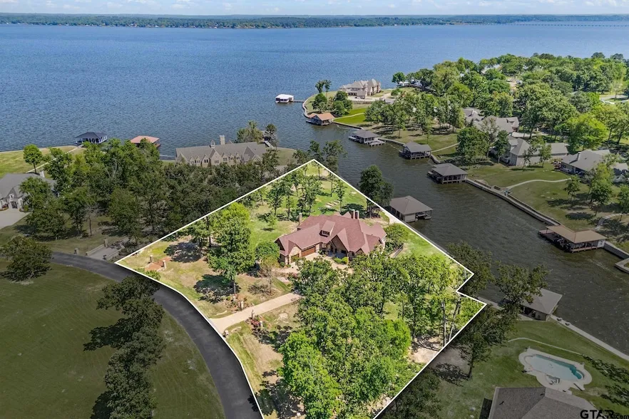 ULTIMATE lakeside paradise in the exclusive Brown's Landing gated community, where luxury meets adventure on Lake Palestine! Stunning 2.1-acre estate, with 442 ft of pristine shoreline, invites you to dive into a lifestyle filled with sun, fun, & relaxation complete with a freshly reinforced bulkhead! Step inside this sprawling oasis & be wowed by the bright living area, soaring vaulted ceilings, & cozy fireplace perfect for chilly evenings. Open layout flows beautifully into a formal dining room & gourmet kitchen featuring oversized island ideal for whipping up delicious meals & hosting unforgettable parties! Picture sipping your morning coffee on your covered patio, warmed by wood-burning fireplace, as you soak in breathtaking sunrises over the shimmering lake. Need a cozy hangout? Versatile bonus room with captivating views is perfect for family meals or lazy afternoons. Primary suite is a spacious sanctuary boasting an impressive bathroom with coffee bar & private access to the backyard. Thoughtfully designed lower level is an entertainer s dream, featuring extra living area with a warm fireplace, a game room with pool table, bar for mixing up your favorite drinks, & high-tech media rm with updated Full Swing golf simulator for year-round fun! Plus, 3 additional bdrms, 2.5 baths, & loads of storage for all your toys await. Step outside to your lower patio & embrace blissful waterfront living with innovative bug misting system no pesky bugs here! Your 3-stall boathouse with stunning Garapa Brazilian hardwood deck & fresh water access is ready for fishing, boating, & skiing. This extraordinary property blends luxury, comfort, & playfulness, featuring a newly upgraded Crestron home automation system, Hickory wood flooring, Generac Whole House 36KW backup generator, & 2 buried propane tanks(1000 & 500). Featuring adaptable site designs, this estate is a true gem waiting for you to claim it! DIVE IN & make it yours! Fresh APPRAISAL completed OCT 2ND & ready to share
