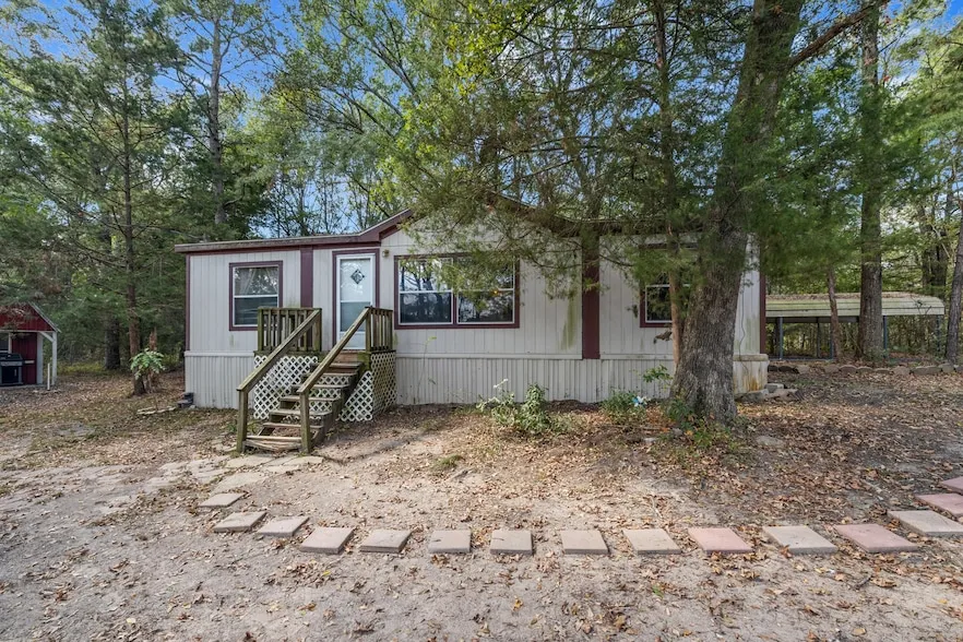 Escape to peace and privacy on this 12.9-acre wooded retreat surrounded by the serene Muddy Creek wetlands and East Texas nature. A Texas-flag-painted gate welcomes you onto the property, where a 2-bedroom, 2-bath manufactured home provides a comfortable place to live. Two barns, both with electricity available, offer endless potential one with a dirt floor ideal for a workshop, garage, or equipment storage, and the other perfect for additional storage, guest quarters, or entertainment space. Enjoy the sights and sounds of nature while still being just 1.5 miles from Lake Quitman, a short drive to Lake Fork, and within convenient reach of the Metroplex. A rare opportunity to own a private East Texas hideaway where the possibilities are endless.