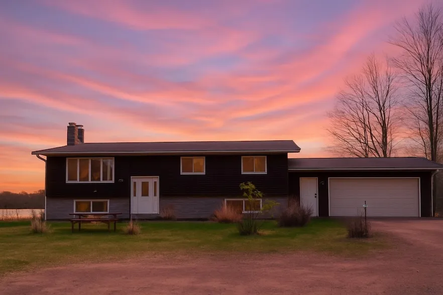 Escape to your private retreat on the scenic shores of Half Moon Lake in Bayfield County. Nestled on 1.69 acres with 160 feet of pristine, sandy, level frontage, this inviting split-level ranch home offers tranquility and modern comfort. Half Moon Lake is a 106-acre spring-fed gem known for excellent fishing, boating, kayaking, and swimming, complete with a dock for your enjoyment. Inside, you ll find an open-concept living area with vaulted, beamed ceilings and expansive picture windows that showcase breathtaking lake views. A beautiful wood-burning fireplace adds warmth and ambiance for cozy evenings. The spacious kitchen and dining area flow seamlessly to a large deck through French doors ideal for entertaining or simply relaxing while watching deer, loons, and hummingbirds in the park-like yard adorned with lilacs, magnolias, peonies, a willow, and crab apple trees. The main level of...