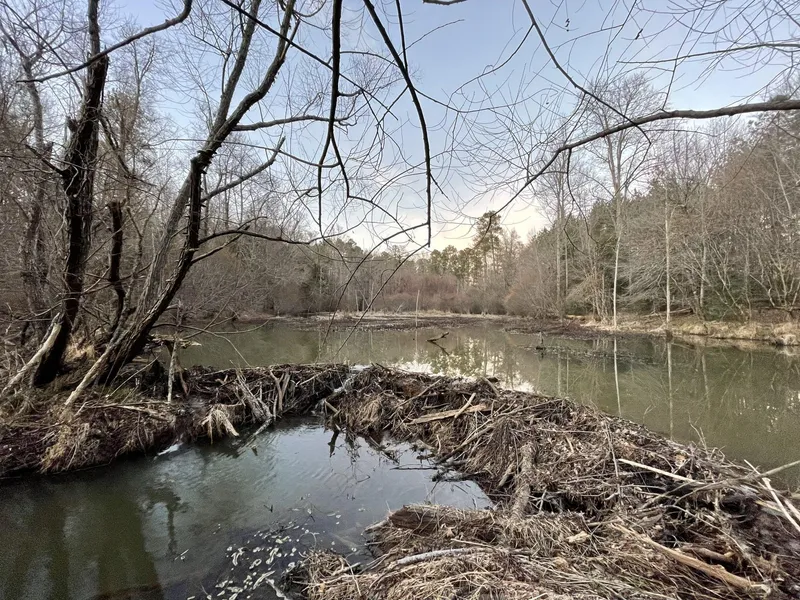 Hogskin Creek Tract is a diverse forested property in a clean, quiet rural setting. About 80 acres of broad uplands are covered in loblolly pine now about 24 years old. About 17 acres of old hardwood mixed with large pines stand at the northern end. Hogskin Creek forms part of the western boundary and another perennial stream flows through the tract to meet it. On the south side, another small creek flows along the line. Yellow poplars, oaks and other hardwoods line the creek banks. A beaver swamp fills a broad bottom where the two main creeks meet.