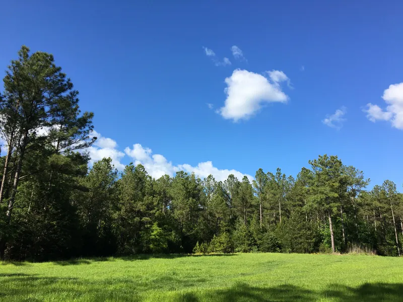 Most of the property is covered by a productive stand of planted loblolly pine 27 to 28 years old that has been thinned twice. There is also a stand of mixed pine and hardwood more than 40 years old, an area of big hardwoods, and food plots. Mature forest with oaks and other hardwoods mixed with pine stands on the adjacent public land.