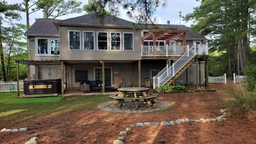 This charming property is nestled just outside of the East Point subdivision and is currently a very successful Air B&B and is being sold fully furnished. Continue to use it as a B&B or use it as your full-time residence. The interior has high ceilings, open floor plan, beautiful kitchen (new appliances in 2022) and plenty of space for entertaining. Property includes floating dock, patio, hot tub, outdoor shower, porches, deck, pergola and lookout. New docks and decks in 2022. There is much potential with this property, be it on or around the water or just relaxing on the 5 acres. Just a 15 minute drive to the Wharf & boat ramp in Onancock, restaurants, shops, art galleries, theaters, YMCA and Riverside Shore Memorial Hospital.