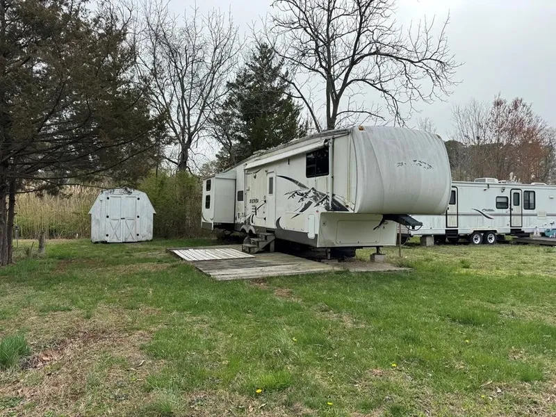 Lot with septic and shed. Fifth wheel shown in photos does not convey with sale. Just around the corner from the boat ramp, boat slips, and fishing pier. Also includes access to pool, clubhouse, pavilion, pickleball court, crabbing pier, playground and more.
