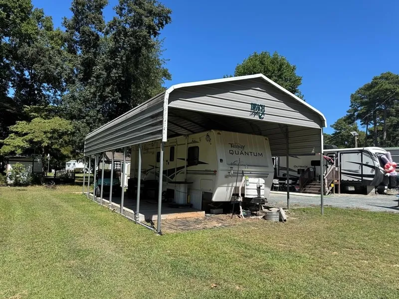 Nice one bedroom camper on a lot with septic, shed, camperport, and deck landing.. Includes access to pool, dock, fishing pier, crabbing pier, marina, clubhouse, general store, pavilion, playground and more.