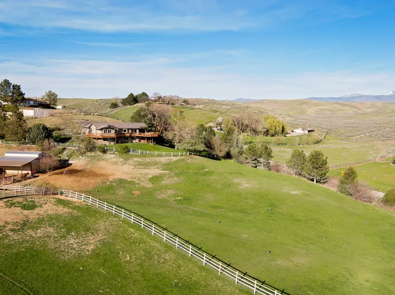 This country estate is perfect for the gentleman farmer or horse lover. The rural acreage has access to some of Boise’s best equestrian riding trails. It is already set up for livestock or horses with its barn, irrigated fenced pasture and large riding arena with 4 rail fence. The parcel also features a shop with electricity, RV parking, a septic system and individual well. The property is also located within the newly developed Eagle Foothills AVA and is perfectly situated to establish a vineyard.