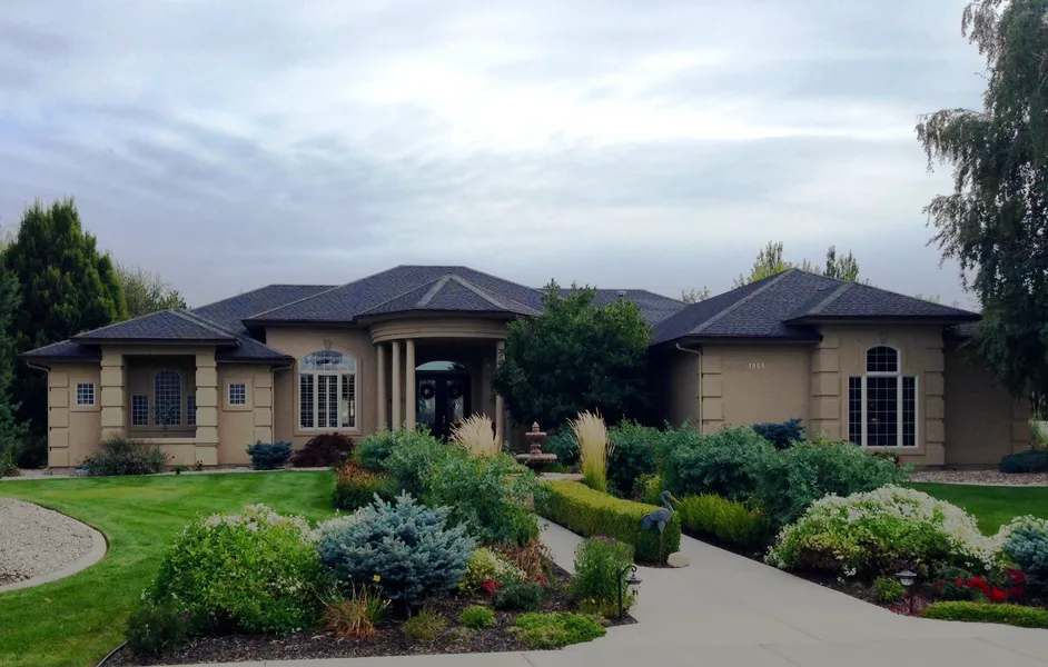 Beautiful, spacious 1.4 acre estate located right on the edge of Eagle. This lovely home will not disappoint. Greeted by landscaping and the sound of cascading water from the fountain, the grand entry invites you in to the two story formal living room. The formal dining has an exquisite chandelier, a built in china display, and will hold many guests. The office is right off this entry making it convenient to conduct business if you have client meetings.