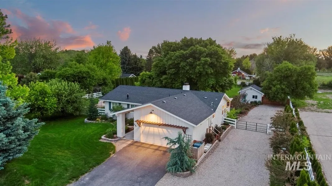 This quintessential farmhouse sits on a lush acre of land, backing to a blueberry farm! Just 10 minutes from downtown Eagle, its country living at its best. Plant fruits & vegetables in the garden, tend to the grape vines, take a spin on the paved track that circles the backyard or relax on the porch swing. Inside, the classic, updated kitchen has a Wolf range & double ovens w/butcher block & quartz counters & a darling pantry. This home functions on a single level w/master & laundry upstairs.One of a kind!