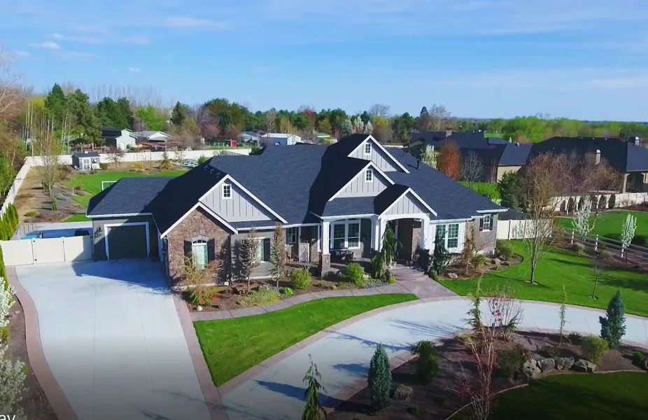 This home was designed by the current owners to provide spacious, comfortable living with every room thought out in detail. Starting with the front entry, a double door gives security but lets light in, and when both are open, moving furniture in and out is no problem. The office located to the left, just inside the entry, provides only a view of the living room to any clients. The bedrooms are sized large enough for full bedrooms sets. All but one have walk in closets. The master suite boasts a bay wall full of windows for the sitting area, and has a tray ceiling. The master closet has built in seating along with floor to ceiling storage. The laundry room is larger than a typical bedroom and has a built in desk for sewing, cabinetry and long countertop, drying racks, and a walk in closet for storage. The home has 12 ceilings throughout, Apple Airplay surround sound, and beautiful crown and millwork detail that adds to the grandeur of the home. The living room is flanked with columns, a corner fireplace with built in bookcase and entertainment center, and large windows letting plenty of natural light in. This flows into the elongated dining room where 32 guests have been served at one time! The gourmet kitchen has plenty of storage between the cabinets and island. The hood over the built in gas range is rich in detail and there is even a pot filler! Located near the garage entry, tucked away out of site, is the best butlers pantry ever!...to help store all those canned goods! When the kids come home from school, they can use the side Dutch door, help themselves to a drink from the drinking fountain and set their things in the built in cubbies. The stairwell leading downstairs is 5 feet wide for ease of moving furniture. Behind the built in bookcase is 1200 feet of hidden storage! You could have another kitchen down there if you want to, it is already plumbed for one and the great room has been wired to be a theater. The home is also wired for an alarm. The garage is a very oversized 3 bay, with a 4th garage door that goes out to the back side patio where the basketball court is and RV parking. The back covered patio is wired for a TV, has built in fire pit, built in flower beds, and stamped concrete border. The back is shaded in the evenings. Please see eaglerocklistings.com for more information (including aerial video, 3D interior tours and additional written information for most listings).
