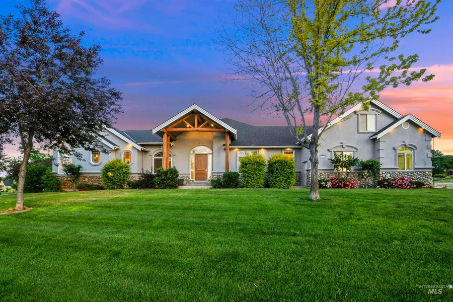 Only a few weeks left to enjoy this swimming pool & elaborate gazebo on 1.6 lush acres with mature landscaping. The sweeping vistas from massive windows are breathtaking. Every room has a view! Genuine hardwood throughout most of the main floor. This beauty is perfect for multi-generational living. Spacious master ensuite + a 2nd master on main level that features open tile shower for easy wheelchair access. In '21, the elaborate gazebo was built + new roof + exterior paint. In '23, new interior paint & new carpet in most rooms. TWO laundry rooms, towering ceilings & abundant storage are just a few of the features in this finely built home. Fully fenced & huge outdoor shed. Shops are ok with HOA approval. Community equestrian center for the horse enthusiast. Irrigation water included in HOA dues up to a set amount, then you pay extra for overages. Buyer & agents to verify all info.