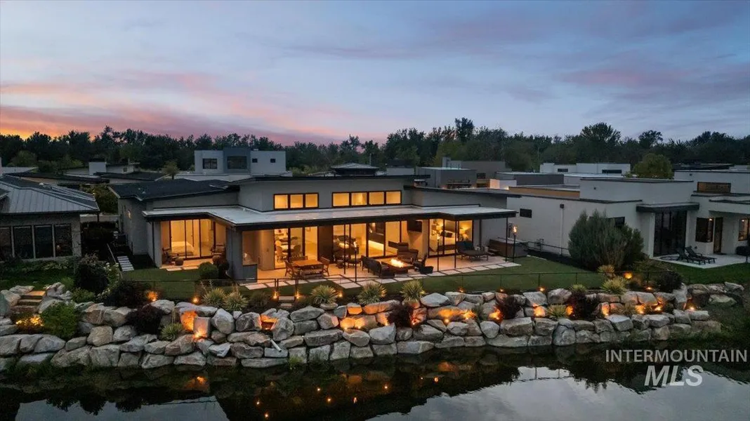 Located in the highly coveted gated community of Renovare, this stunning modern waterfront home is the epitome of an entertainer's dream. Designed for those who enjoy fishing, paddle boarding, and easy access to the greenbelt/Boise River, this home offers endless recreational opportunities. The community boasts maintenance-free living, an exquisite pool, fitness center, changing rooms, steam room & bocce ball courts. Inside, the home is nothing short of extraordinary in every aspect: Hand picked designer finishes throughout, a state-of-the-art Crestron A/V system, and a custom-built golf simulator. The kitchen includes top-of-the-line Thermador appliances, Dedicated bar, 80-bottle wine fridge, and a butlers pantry. The primary suite offers a spa-like bath w/ a full custom closet. Step outside to your backyard oasis, complete with a hot tub, Tiki torches, custom fire pit, full outdoor kitchen, artificial turf, custom lighting, and incredible waterfront views! This home elevates every aspect of luxury living!