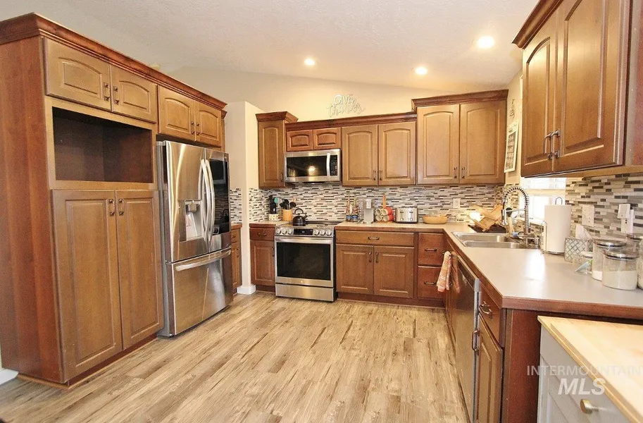 Nestled in the sought-after Star community, this beautifully updated home is a true gem. Recent upgrades include a new furnace, air conditioning system, and a newer roof, ensuring comfort and peace of mind for years to come. The bathrooms feature stylish, modern vanities, while all-new HVLP flooring and upscale kitchen cabinetry elevate the home's aesthetic. The vaulted ceilings in the living room create an open and airy feel, complementing the spacious split-bedroom floor plan. Outdoors, enjoy an oversized back patio with a charming sail cover, perfect for relaxing or entertaining. Take a short stroll to the highly popular Blake Haven Park or indulge in a treat from Sully's, famous for their irresistible Mud Pie. Don't miss the opportunity to make this exceptional home yours!