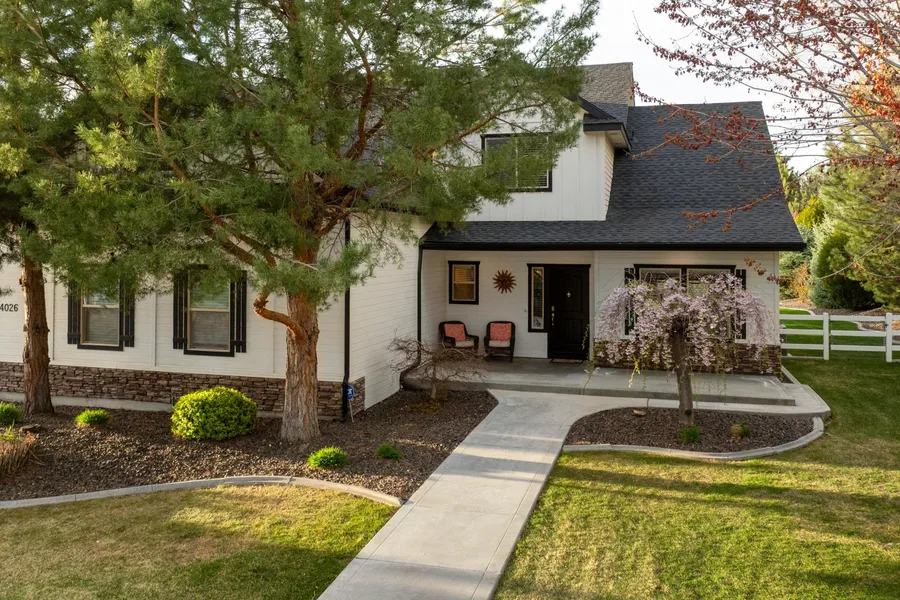 This exceptional Eagle property delivers the ultimate equestrian lifestyle with premium facilities, including a newer Noble two-stall barn, tack and feed rooms, fully fenced and irrigated arena with automatic watering, and convenient road access for easy horse care. Inside, soaring ceilings and abundant natural light create a welcoming atmosphere. The chef-inspired kitchen features granite counters, alder cabinetry, stainless appliances, and an island designed for gathering. Enjoy a luxurious main-level primary suite offering a relaxing garden tub, tiled shower, and custom cabinetry. Upstairs provides versatility with four spacious bedrooms and an expansive bonus room featuring a wet bar, perfect for entertaining. Outside, find generous space to garden, homestead, or unwind. Store all your toys in the 4-car garage which includes an oversized 12 ft door. Ideally located just moments from ...