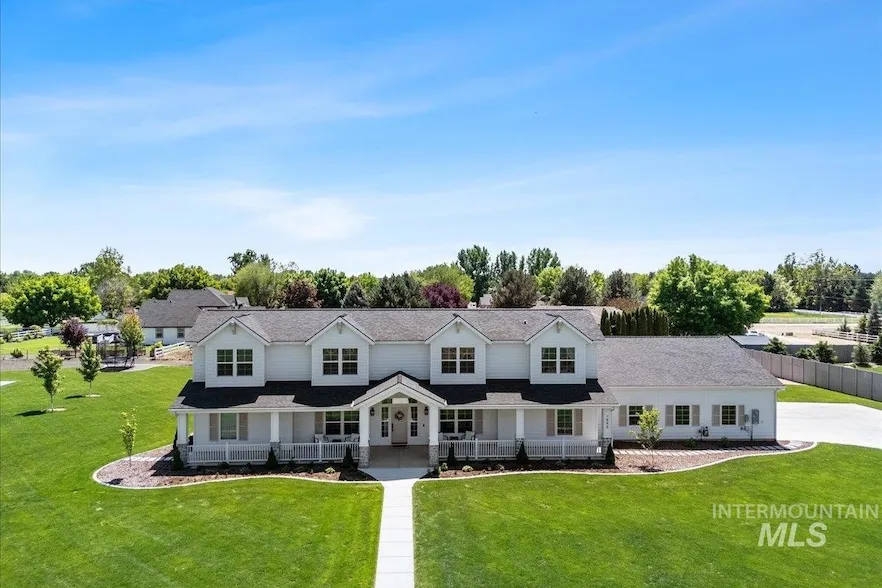 This beautifully designed home is living the Eagle dream! The home sits on nearly 2 acres with no HOA. Come enjoy the private and quiet life tucked away on a cul de sac. Inside, you ll find all the benefits of new construction from the exquisite finishes to being meticulously maintained. Inside features vaulted ceilings, large windows that bring in tons of natural light, and an open layout that makes the space feel even bigger. There are two dedicated office spaces, perfect for working from home or setting up a quiet study area. Built with a finished and conditioned gym for year round use. Out back, the vaulted ceilings continue over the covered patio, making it a great spot to relax or entertain. The property also features a basketball court, plenty of garden space, and a fire pit. With both a covered front porch and a private backyard, there s room to unwind in every direction inside and out. Minutes away from Downtown Eagle, schools, local shops, and amenities.