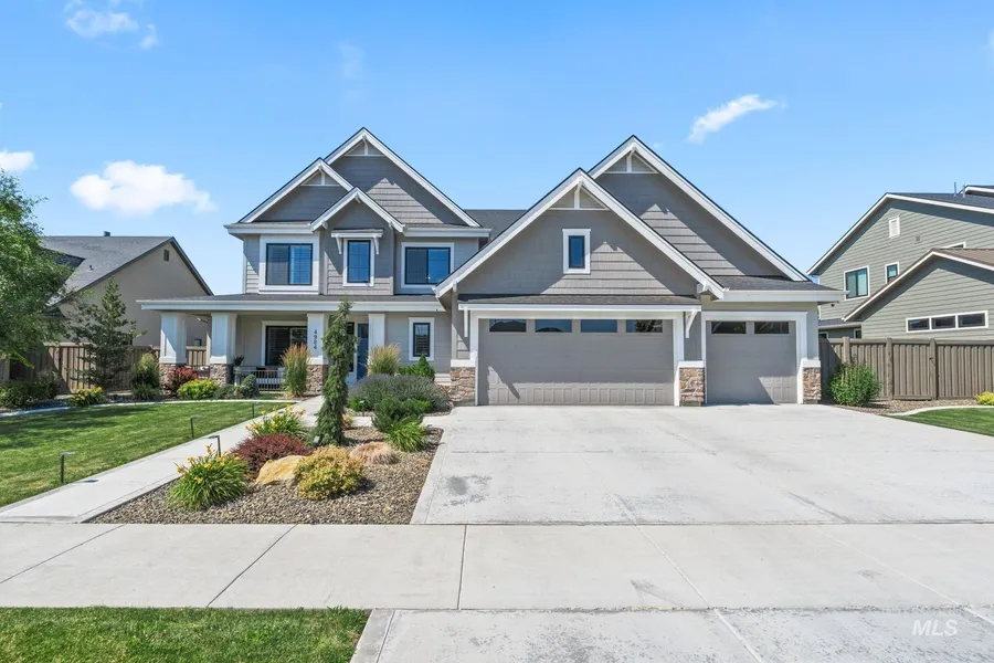 Eagle’s most sought-after family friendly communities. This spacious 3,566 sq. ft. home offers 5 bedrooms, a dedicated office, and a generous bonus room, delivering exceptional versatility for work, relaxation, and entertaining. Thoughtful upgrades—over $45,000 worth—enhance every corner, including custom blinds, a motorized shade awning in the back, and upgraded landscaping with added concrete curbing. The gourmet kitchen is a true focal point, showcasing quartz countertops, premium Thermador and Bosch appliances, walk in pantry and a butler's pantry, tons of cabinet space, a large center island, and designer finishes throughout. Natural hardwood floors flow into the serene main-level primary suite, complete with a large walk-in closet, dual sinks, soaking tub, and walk-in shower. Smart-home features add convenience with app-controlled locks, thermostat, blinds, and a remote-controlled ...