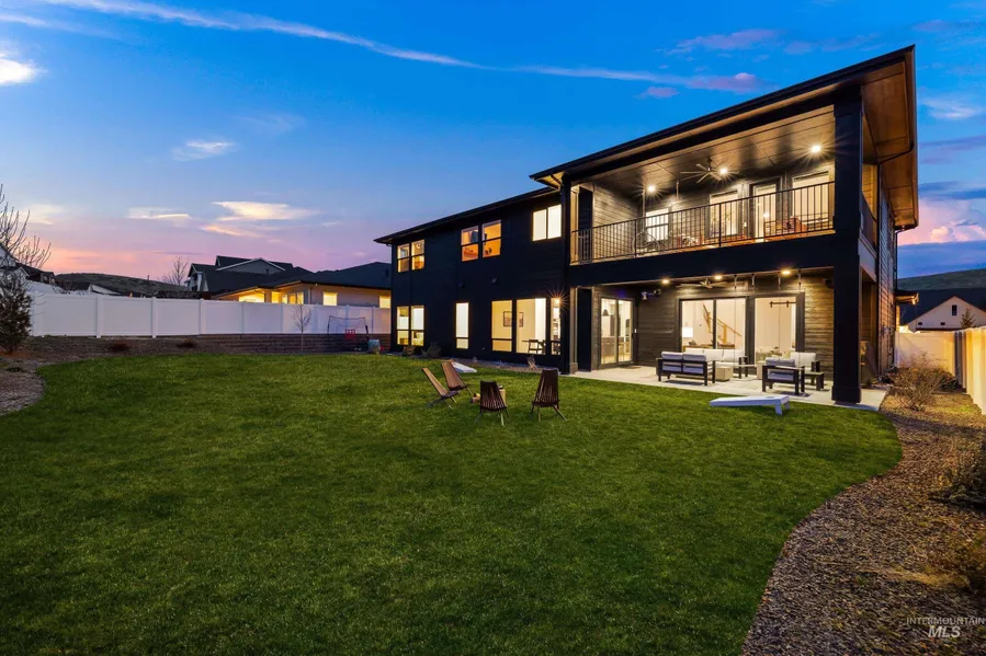 Better than Builder Basic - This 5,122sqft modern masterpiece in Boise's premier Dry Creek Ranch offers luxury living with bold style. Thoughtfully designed with 4 spacious bedrooms, including a main-level guest suite with private bath, this home is ready for mutli-generational living. The chef's kitchen is a showstopper - featuring designer lighting, high end appliances, and a butler's panty making entertaining effortless. Upstairs, the primary suite is true retreat with a private den, serene morning room, spa-like bathroom with a soaking tub and access to a second story patio with stunning foothill views. Upstairs laundry makes daily living easier. A home gym, 2 bonus spaces and hidden armory add both function and intrigue. Set in one of Boise's most sought after communities, residents enjoy access to pools, coffee shop, sport courts, trails, a community garden, and equestrian center. With a short drive to Eagle's amenities and the best schools in the valley, your new life is ready to claim... Make this luxury life in Dry Creek Ranch your next chapter!