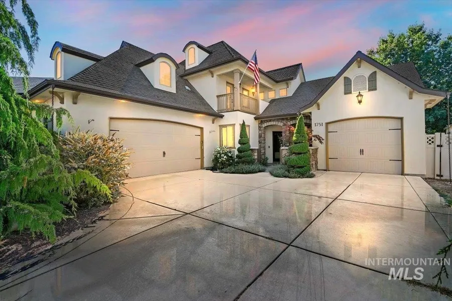 Welcome to this stunning residence in the coveted Bridgetower Subdivision, offering 3 bedrooms, 2.5 baths, and 2,564 sq ft of luxurious living. The expansive primary suite is conveniently located on the main level with dual closets, a walk-in shower, and private patio access wired with 220v for a hot tub. The home showcases brand-new interior paint and carpet, wide-plank hardwood floors, volume ceilings with wood beam accents, and extensive trim detail. The gourmet kitchen is a chef’s dream with slab granite counters, built-in double ovens, custom cabinetry, and a breakfast bar with adjoining workstation. Upstairs, you’ll find a spacious bonus room/office with its own closet and balcony. Outdoors, relax beneath the covered patio or trellis-covered pavilion overlooking the fully fenced yard. Originally built as a former award-winning Parade Home, this property was crafted with timeless upgrades and thoughtful design, making it an extraordinary opportunity in one of Meridian’s most desirable communities.