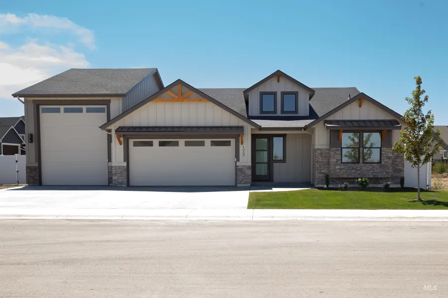 Another stunning home crafted by Rugged Terrain Homes. GreatRm design with amazing open kitchen, large honed granite island/breakfast bar w/deep sink, surrounded by tons of cabinetry/storage, walk-in pantry & Bosch appliances. Living Room crowned with coffered ceilings, has great light throughout, cozy tiled fireplace, easy access to office/den with barn doors and closet. Primary boasts beautiful walk-in shower, soaker tub, dual vanities w/large quartz countertops & tiled backsplash. Secondary bedrooms w/ceiling fans. Notice the extras, tile feature wall in bathroom, mud bench, folding station in laundry, window seats, upgraded lighting pkg & attention to detail at every corner. 41ft deep finished RV garage complete w/Hot/Cold water spigot, 50 Amp plug+2nd rollup door for easy mower access (for nearly 1/4 acre) or hanging out in the awesome garage (imagine playing corn-hole INSIDE when weather is bad!) Neighborhood offers pickleball court, picnic gazebo & tot lot. HOA includes pressurized irrigation.