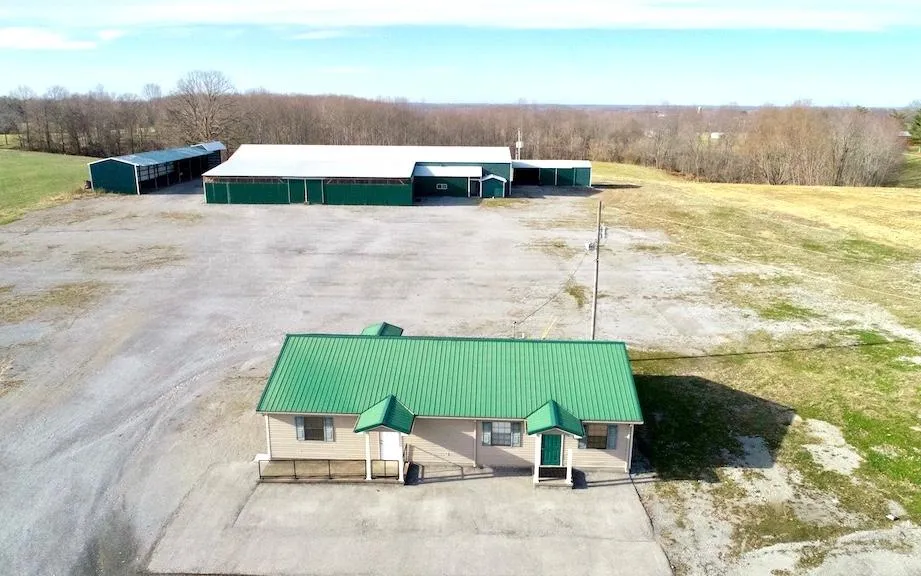 A4463 7634 Liberty Rd., Columbia - Commercial/Manufacturing Facility consisting of a modern 1771 Sq. Ft. +/- Office Building with 9 offices, (2) half baths, storage rooms, central heat & air and double-pane windows. The main manufacturing building offers 14,995 sq. ft. +/- under roof, metal building mostly insulated, mostly concrete floor, 3 phase electric, large sliding doors and control room. This building was a former gate shop w/carriage drying rack system. Property also has a 24ft. X 100ft. six bay storage shed with a 20ft. X 30ft. single bay addition. Property totals 18 Acres, m/l, - $249,500.