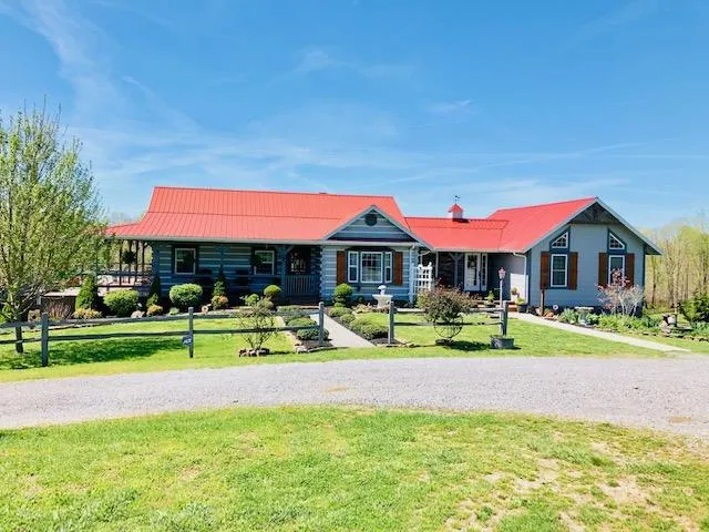A4230 325 Pinetop Rd., Columbia, KY If youre looking for a beautiful and well-maintained home and property, this is the one! Property features approx. 105 acres m/l, ideal for cattle and/or horses, being totally fenced pasture land with 2 ponds, springs, and a large hay bottom fronting on Sulphur Creek. Property features a multitude of well-maintained improvements including a custom-built Jim Barna log home with large master suite addition! House offers 2 or 3 bedrooms, 3 full baths, living room with fireplace, large remodeled kitchen with copper sink all stainless appliances custom bar, main level utility area with built-in organizers, coat rack & laundry sink! You will love the large master suite with exposed hand-hewn beams wormy chestnut rustic barn doors large walk-in closet master bath with tiled shower double vanity clawfoot tub chandelier & more! The full basement is totally finished and has walk out entrance plus family room, extra utility room, the 3rd bedroom and bathroom with all main rooms in basement having windows. Home has a multitude of covered porches and decks, plus covered gazebo! Also on property is a large 40 ft. X 70 ft. multi-purpose barn with 4 horse stalls woodworking shop tack room storage area, also a 2 stall horse barn with loafing shed, another multi-purpose garage/shed building, and a heavy-duty metal panel corral with watering trough and feed bin. Property has approx. 20 acres m/l in woods and is privately located at the end of a county road offering a wonderful country atmosphere.