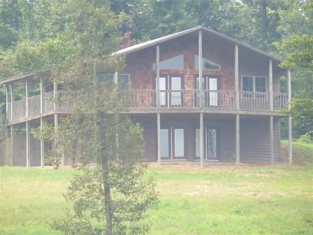 BANK OWNED PROPERTY - Do you want acreage, privacy, and beautiful views? This rustic log sided house and metal barn is situated on 58 acres m/l. Home has one bedroom & one bath on main level with open concept living room-dining room and kitchen, and also utility area. Kitchen has oak cabinets and lots of counter space. Hardwood floors throughout, decorative vaulted ceiling and large windows let in plenty of light! . Downstairs is mostly finished with drywall & drop ceiling & poured basement which also includes a half bath and garage. Large wrap around deck, central heat and air and more! Barn is 30 ft. x 46 ft. +/- with electric and water. There is also a small pond on the property. Call today to view this unique property!