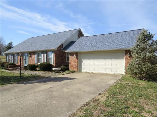 This custom brick home appears move in ready with lots of recent new features added. This house has 4 bedrooms, 2 baths, large living room w/vaulted ceiling and brick fireplace with Heatilator, formal dining room, kitchen w/loads of cabinets, breakfast nook with bow window , main level utility and 2 car attached garage. The beautiful foyer has an open staircase that leads to a skywalk bridge across second level, plus this house has a full poured wall walk-out basement! New recent features include new windows, new central heat & air, new hot water heater, new carpeting and ceramic tile throughout, newly painted walls its just ready for your dcor! This property even has an extra lot for a total of 2 lots. For information call Golden Rule-Wilson Real Estate & Auction at: 1-270-866-6600.