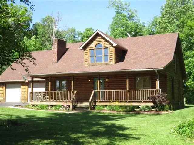 This 2 story log sided home features beautiful laminate wood flooring, tile, and carpet throughout entire home. The main level of the home offers large kitchen with custom cherry cabinets and tile flooring. Living room features a brick wood burning fireplace. Also on the main level there are 2 bedrooms, bath, utility room and a bonus room for an office, with a 2 car garage. The second level of the home features 2 bedrooms, 2 full baths and another bonus room where you can walk out onto the second level deck and down into your back yard. Home offers 2,636 Sq. Ft. m/l of living space and has a first floor back deck and a beautiful covered front porch. Make your appointment today for your viewing of the gorgeous home !!