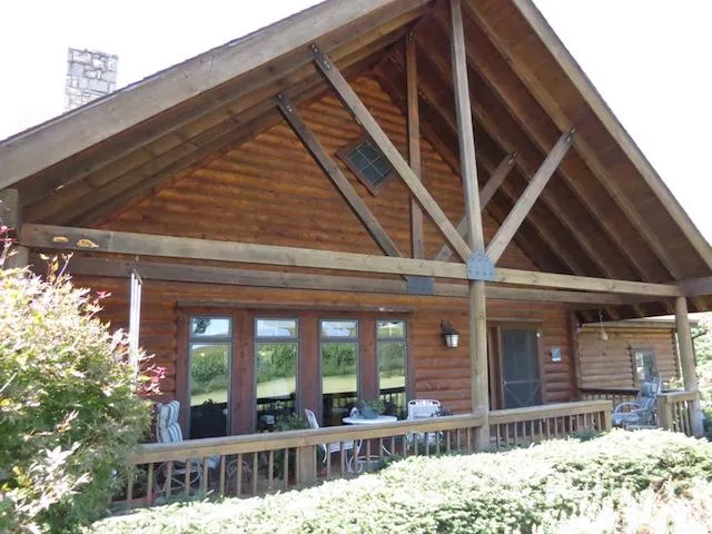 This custom built Jim Barna Log Home offers total privacy, surrounded by beautiful farm land, and located only 3 miles from town. This is a one owner home with many custom features including many stunning architectural details. Home has 3 extra large bedrooms, 2 full baths, kitchen/dining area with hickory cabinetry large island bar pantry all appliances, large openbeamed living room with stone fireplace and also foyer area. The exquisite staircase is open on both sides leading to a cozy nook and library at the top of staircase. House also has a 2 car attached garage with laundry area and a large basement with optional laundry area and concrete safe room. House features oak hardwood flooring, tile flooring and beautiful slate flooring. County water, two central heat & air units, covered front porch, rear deck and covered veranda upstairs. Als...