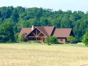 This custom built Jim Barna Log Home offers total privacy, surrounded by beautiful farm land, and located only 3 miles from town. This is a one owner home with many custom features including many stunning architectural details. Home has 3 extra large bedrooms, 2 full baths, kitchen/dining area with hickory cabinetry large island bar pantry all appliances, large openbeamed living room with stone fireplace and also foyer area. The exquisite staircase is open on both sides leading to a cozy nook and library at the top of staircase. House also has a 2 car attached garage with laundry area and a large basement with optional laundry area and concrete safe room. House features oak hardwood flooring, tile flooring and beautiful slate flooring. County water, two central heat & air units, covered front porch, rear deck and covered veranda upstairs. Also a 24 ft. X 30 ft. detached garage wi...