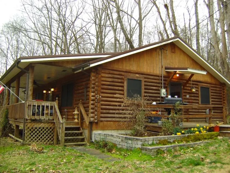GREEN RIVER LAKE NEXT TO MT. CARMEL BOAT RAMP! Beautiful log home setting on 4.5 acres, M/L, (approx.. 3.5 acres wooded), that joins the Corp of Engineers property. Home features an open living room & kitchen area with hardwood floors, 2 bedrooms with large closets & hardwood floors, 2 full baths w/tile flooring. Kitchen features beautiful cabinets and all appliances stay including the stackable washer & dryer. The interior flooring, roof and central heat & air are less than 6 years old. Home features a 8 X 32 ft. front porch, the side entrance is covered with an 8 x 12 ft. deck that leads onto large 14 x 25 deck beside the 20 x 24 covered pavilion. 2 storage buildings stay with the property (one 10 X 12 single door and one 10 X 20 with double door & window. Must see home call soon!