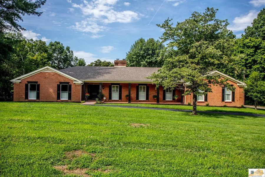 Grand home in the country with acreage and income producing oil well. This spacious custom built, one owner brick ranch is situated on 14 acres located on Jones Chapel in the Gradyville community of Adair County 4.5 miles from Walmart and the Cumberland Parkway on ramps. The first thing that you will notice is the curb appeal from the circle drive, tall windows with crosshead trim to the stately columns, brick sidewalk, covered porch, fresh paint and landscaping. The home has a well laid out floor plan with 2,576 square feet on the main floor and addition 2,576 square feet in the fully finished, walkout basement. Upon entry, you will be welcomed into the foyer with hardwood floors, 9 ceilings, elegant lighting, beautiful crown molding and trim work that is carried out throughout the home. The main level boasts 4 bedrooms including a primary with en-suite, 3 full baths, a formal living ro...